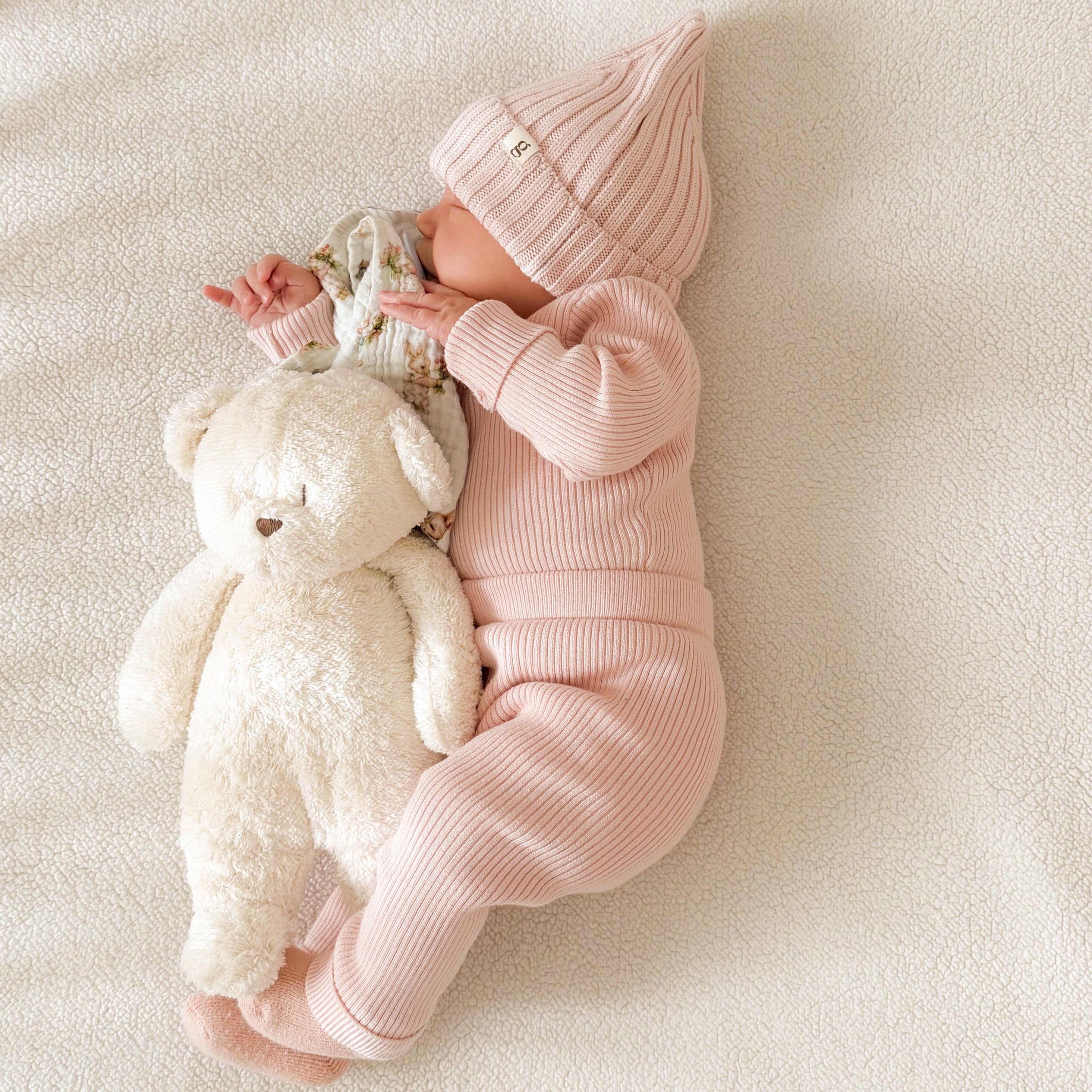 This ultra-soft romper is the perfect balance of comfort and style for your little one. Made from a luxurious blend of bamboo, cotton, and elastane, it offers exceptional softness and great stretch, ideal for both active days and relaxed moments. Its beautiful design adds a touch of elegance to any outfit, while the two-piece set ensures optimal comfort. The newborn size includes hand pockets to protect delicate skin from small scratches.