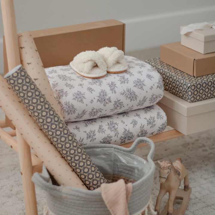 Son design fleuri aux nuances légèrement mauves apporte une touche poétique et apaisante à la chambre de bébé, tout en restant doux, intemporel et raffiné.