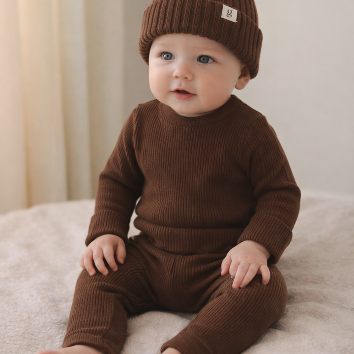 Cache-couche Côtelé en Bambou & Coton – Ultra doux & extensible offrant un ajustement confortable et évolutif.