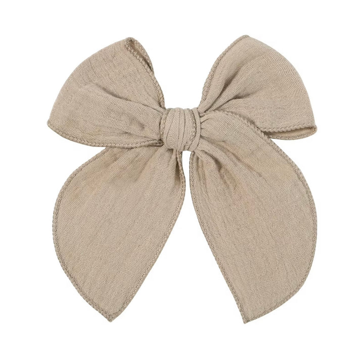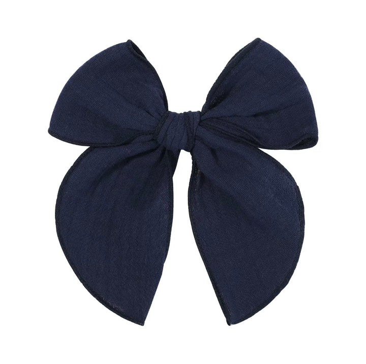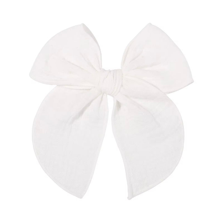 Confectionnée en mousseline de coton légère et vaporeuse, cette jolie boucle d’environ 13 x 12 cm est montée sur une pince crocodile solide et discrète, pour assurer un bon maintien tout en douceur.
